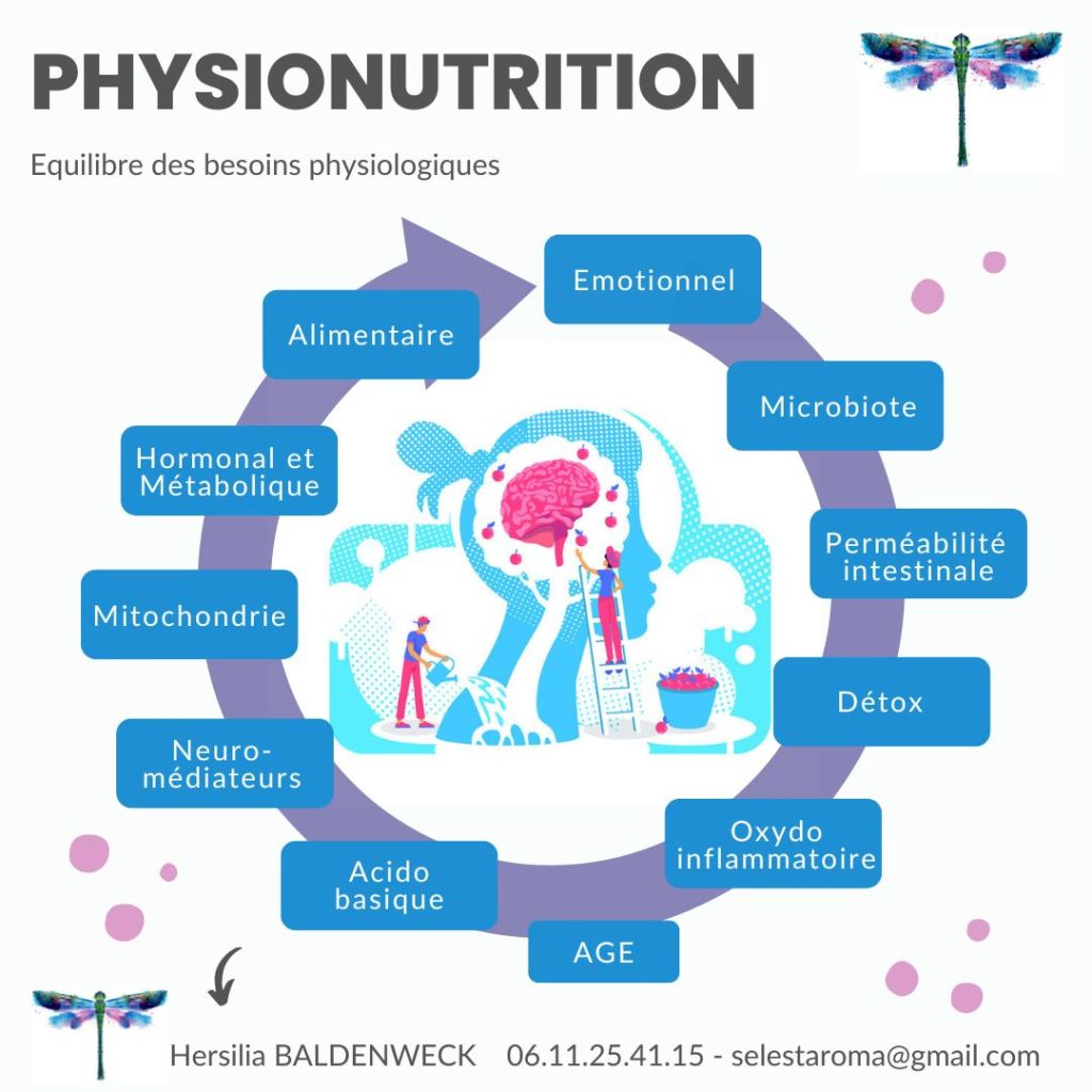 Coach santé certifiée en phytothérapie et physionutrition : spécialisée dans les équilibres digestifs globaux (microbiote, détox, métabolisation énergétique, oxydo-inflmmatoire, voies d’éliminations, …) et initiée à la chrono nutrition.